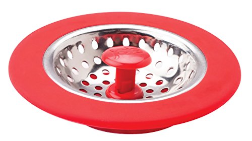 Joie Kitchen Sink Stopper and Strainer Basket, Stainless Steel and Plastic, Red, 4.5-inch