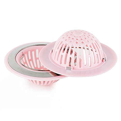 2PCS Stainless Steel Kitchen Sink Strainer Steel Filter Mesh Strainer Drain Strainer (Pink)