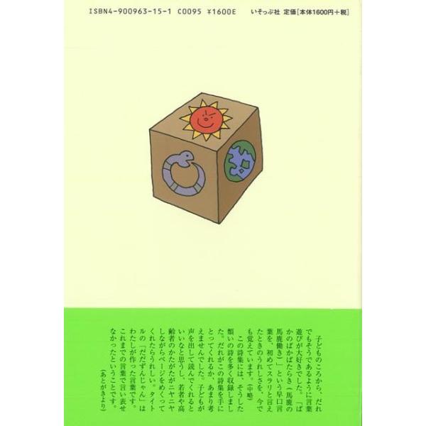 【商品基本情報】 商品名称:だだずんじゃん 著者/出版社:川崎 洋/川崎 洋 初版発行日:2001/06/30 サイズ:A5判 ページ数:122 ISBN/JAN:4900963151/4528189472976