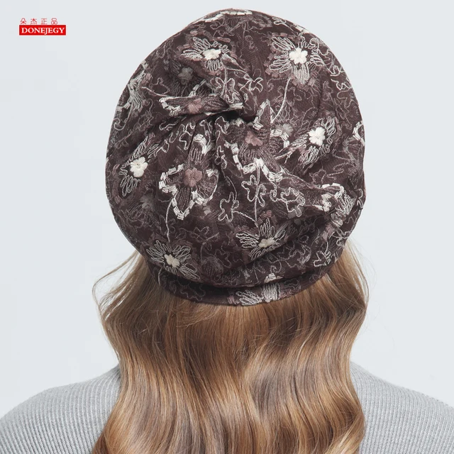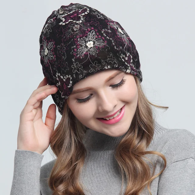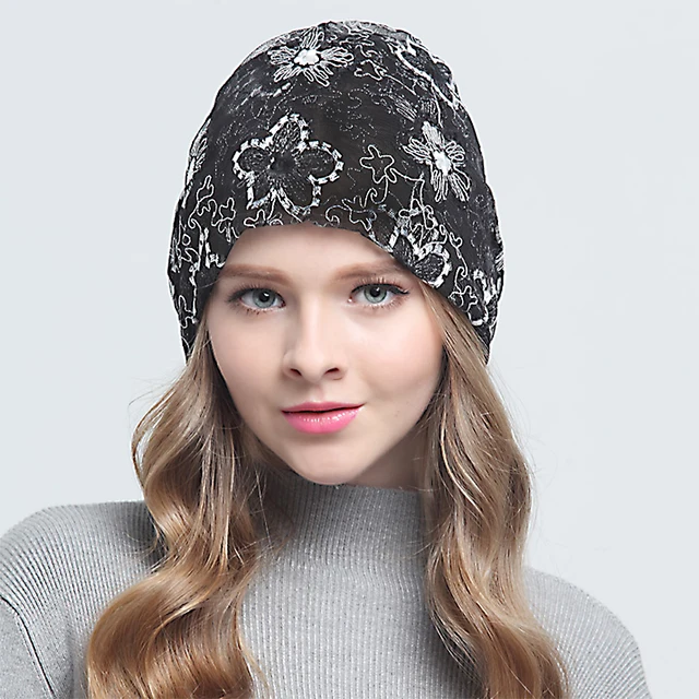 | [해외]새로운 가을 패션 레이스 니트 헐렁한 비니 모자 꽃 여성 따뜻한 겨울 모자 여성 비니 소녀 보닛 헤드 Skullie 캡 |