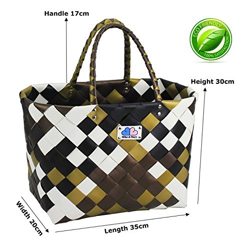 Mike & Mary Washable Grocery Shopping Baskets Travel Bags Reusable Tote Bag Eco-friendly Woven Handbags (earth)