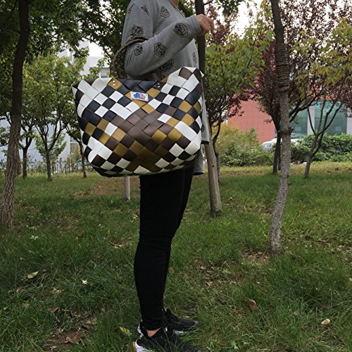 Bag Descriptions: Handmade woven tote bag made from 100% recycled materials. The woven recycled plastic material makes this bag extremely strong. The reinforced woven handles, and strong base hold up to everyday use, will not fray, rip, or break.