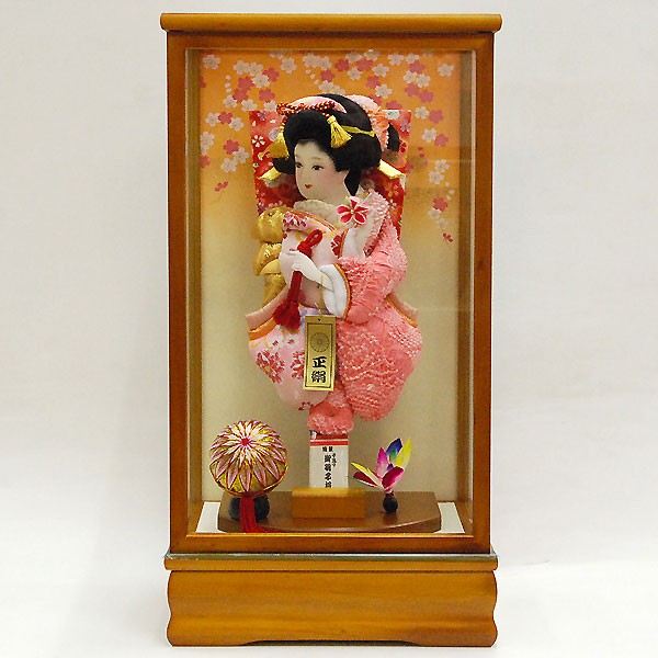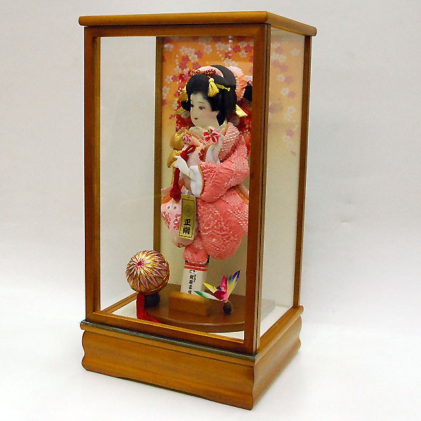 ・和洋室に合う高級自然木使用のケース入り飾り羽子板飾り