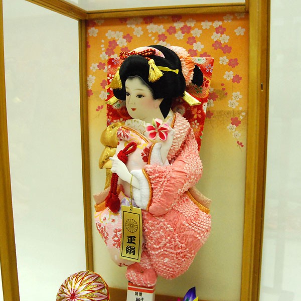・バック板には落ち着いた色目の羽子板セット。