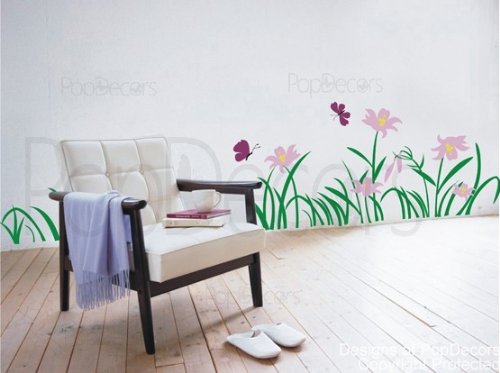 PopDecors - Flowers and grass - 23.6 inch H - Beautiful Tree Wall Decals for Kids Rooms Teen Girls Boys Wallpaper Murals Sticker Wall Stickers Nursery...