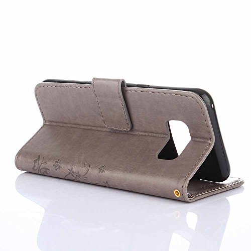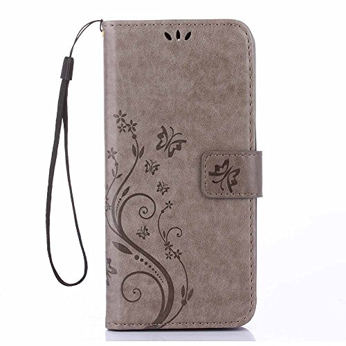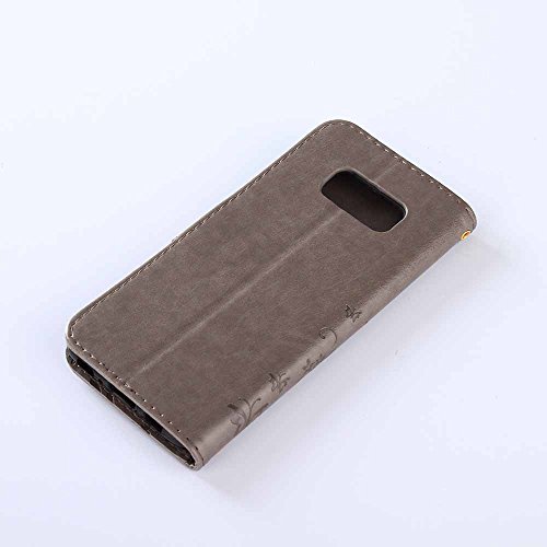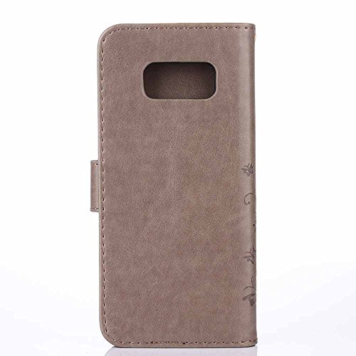 Galaxy S8 Plus Case, C-Super Mall Fashion Floral Butterfly Embossed PU Leather Magnetic Flip Cover Card Holders & Hand Strap for Samsung Galaxy S8 Plus (2017)- Gray