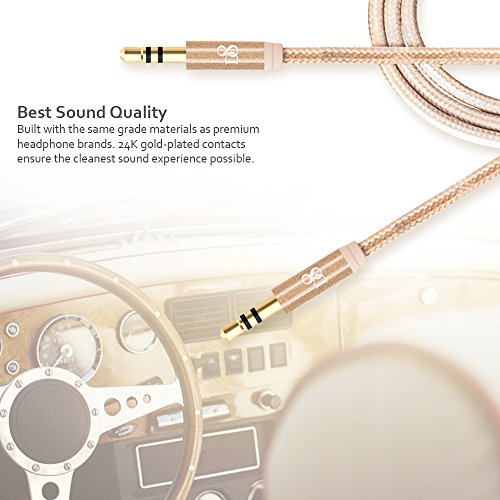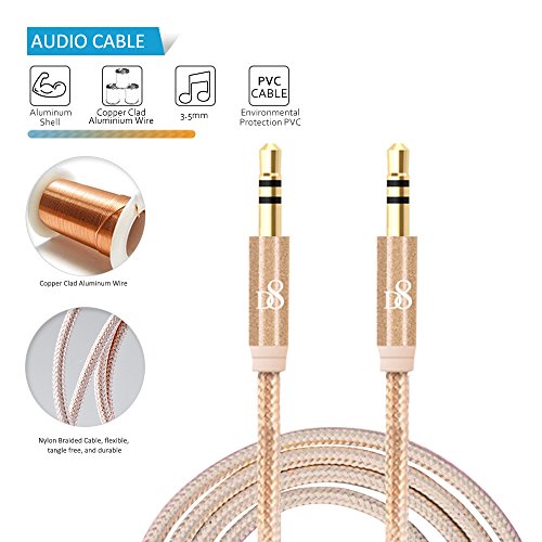 -. Title : TJS® 3.3ft/1M 3.5mm 24K Gold Plated NylonBraided Tangle-Free Metal Shell Male to Male Audio Cable AUX Cable forHeadphones, iPod, iPhone, iPad, Home/Car Stereos and More - Retail Package