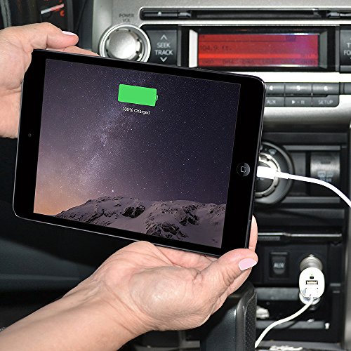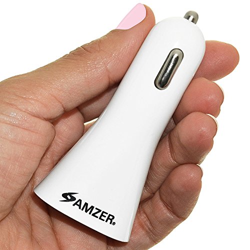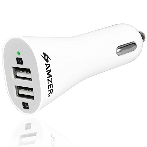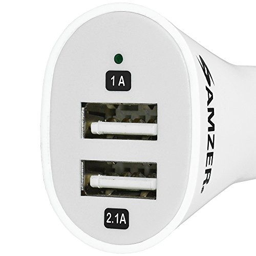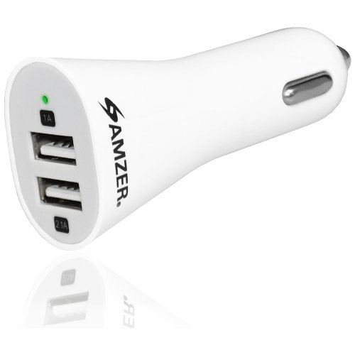Amzer Dual USB Handy Car Charger Adapter with 2.1 Amp for All Smartphones - Retail Packaging - White