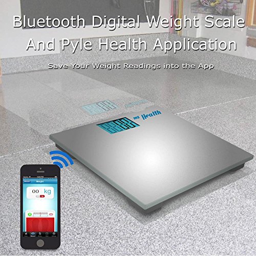 Pyle Smart Bathroom Body Scale with Bluetooth Wireless Smartphone Tracking for iPhone iPad & Android Devices (Silver)