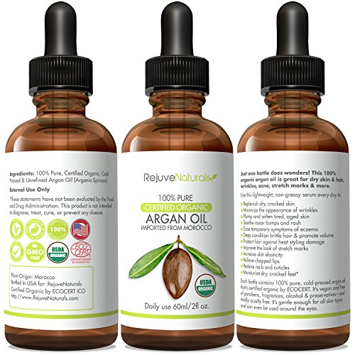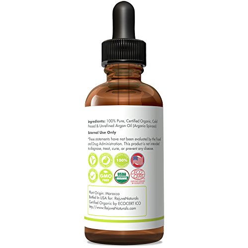 -. Title : Moroccan Argan Oil, USDA Certified Organic, 100% Pure, Virgin, Cold Pressed by RejuveNaturals, 2oz ~ Natural Luxury Moisturizer for Face, Hair, Skin and Nails