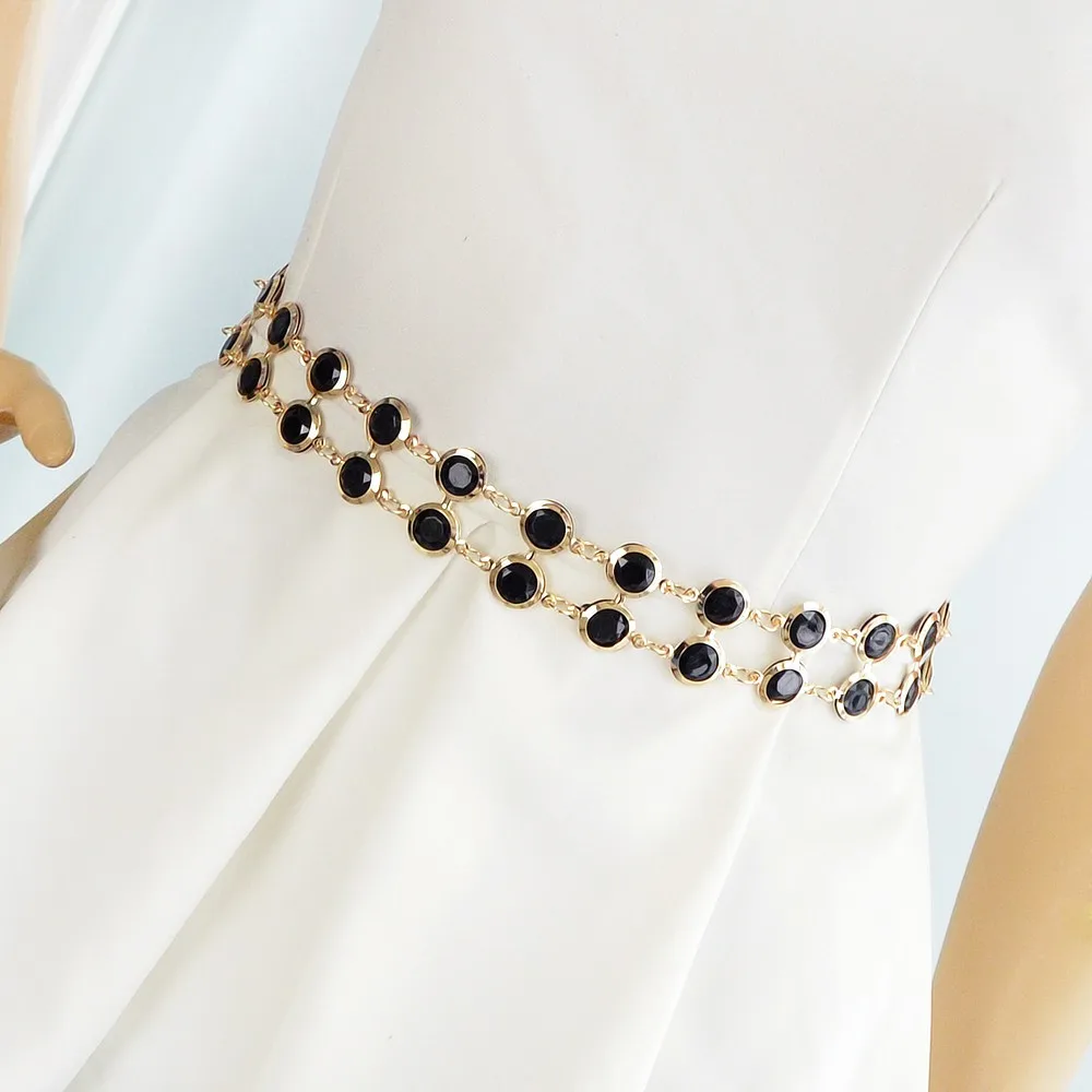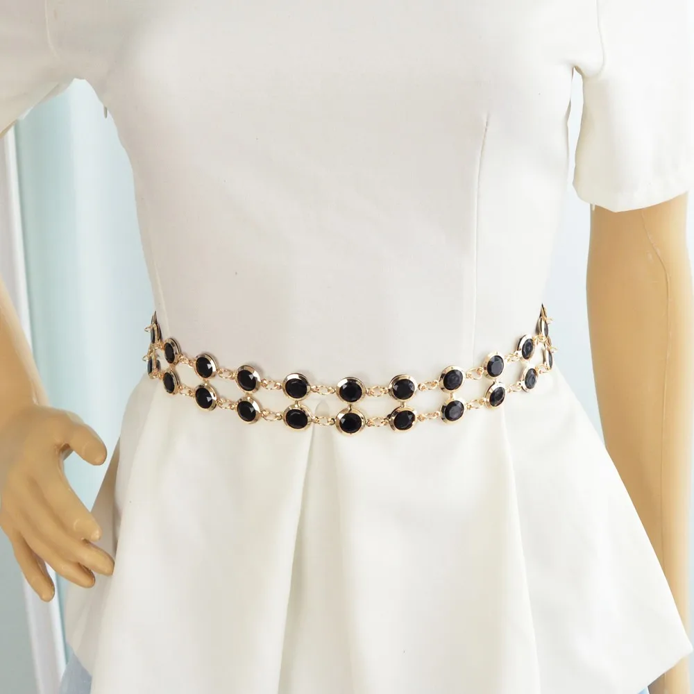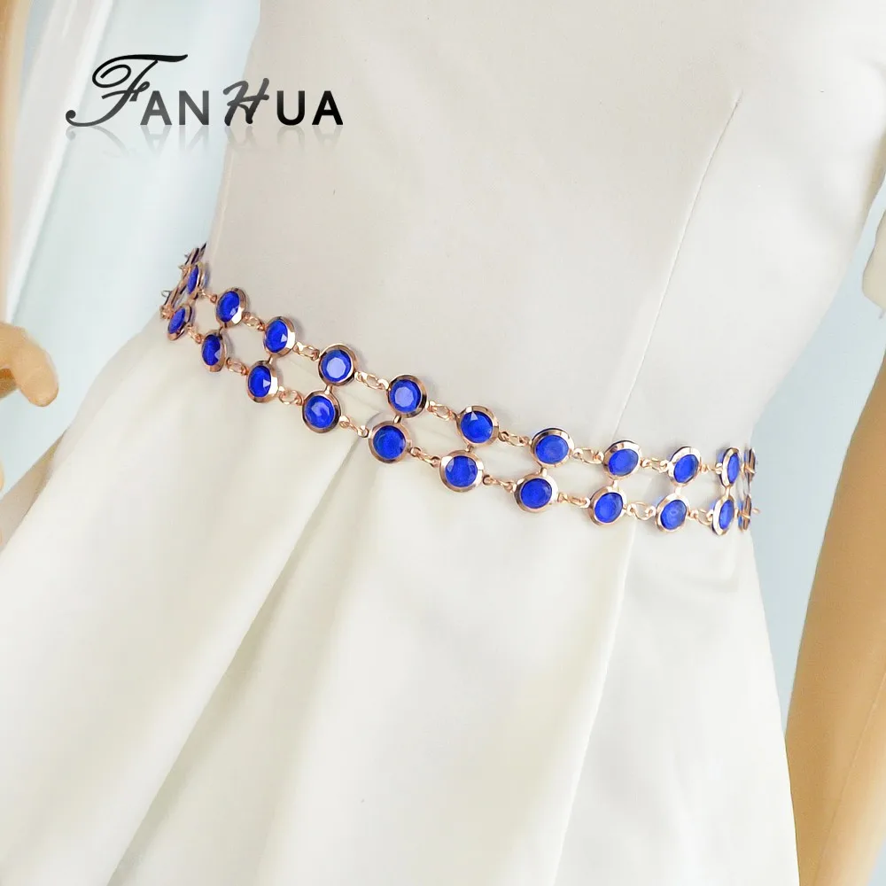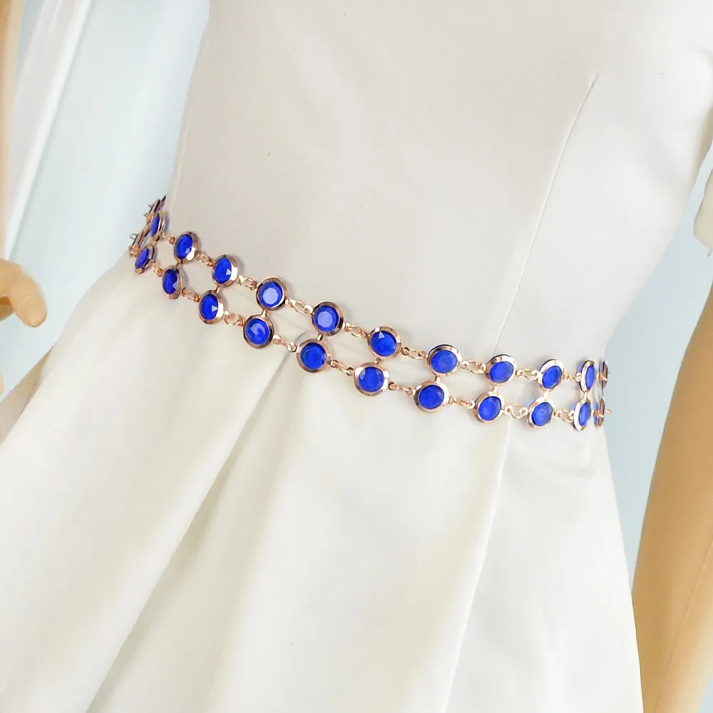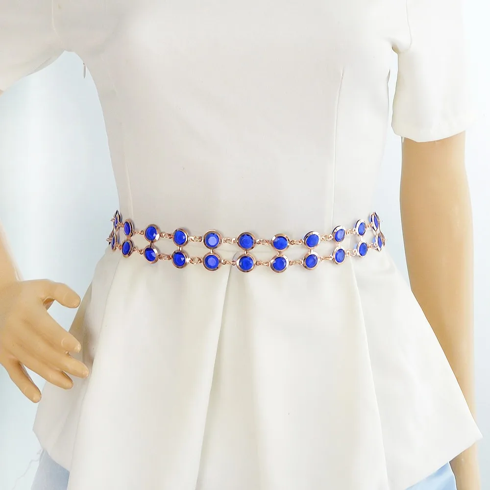 Fashion Designer Blue Black Hotpink Simulated Crystal Adjustable Waist Chains Belts Apparel !#!amp!*! Accessories For Women