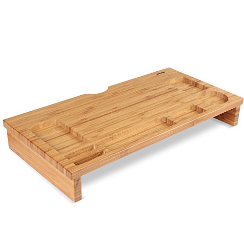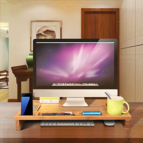 1, HIGH QUALITY MATERIAL: This bamboo monitor stand riser finished by Natural Eco-friendly and sturdy bamboo board, more sturdy than plastic stand and bamboo material makes your stand looks very fantastic.