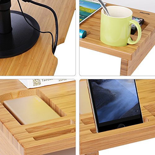 HOMFA Bamboo Monitor Stand Riser with Storage Organizer Laptop Cellphone TV Printer Stand Desktop Container for Home Office
