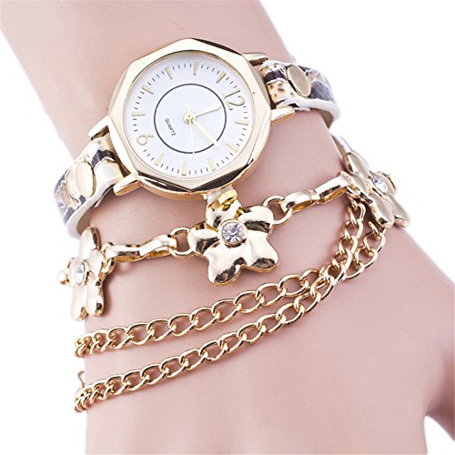 TIDOO Geneva Brand Watches Quartz Movement Winding Wrap Leather Chain Flower Bracelet Watch White