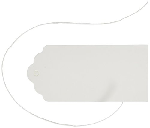 Wrapables 50 Gift Tags/Kraft Hang Tags with Free Cut Strings for Gifts Crafts and Price Tags, White Scalloped Tag