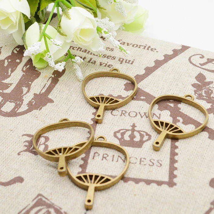 ■生産国:中国レジン枠 レジン型 レジン空枠 レジンパーツ パーツ ネックレス カン付き うちわ ペンダント 金古美 手作り ハンドメイド UVレジン 手芸 レジン クラフト チャーム パーツ 中抜き 金具 レジン枠 うちわ 4個セット レジン枠 うちわ 4個セット うちわ型おしゃれレジン枠でアクセサリーを!
