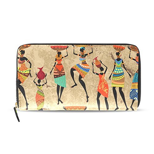 -. Title : WellLee Leather Clutch Wallet African Woman With Vase Grunge Art Long Purse Bag