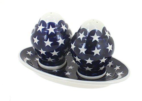 Polish Pottery Stars Salt & Pepper Shaker with Plate