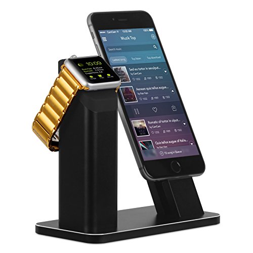 Apple Watch Stand,ZIKU Aluminum Apple watch iPhone Charging stand Dock Station -- Support Apple Watch NightStand Mode and iPhone 7/7 plus/SE/5s/6S/PLUS with Various Case(Black)