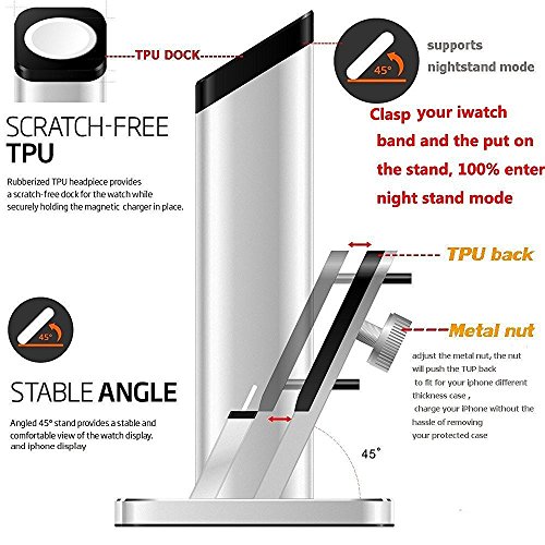 apple watch stand-- Aluminum stand with TPU dock avoids scratching the watch. Holds your Apple Watch steadily with elegance, durability and fashion.also supports nightstand mode