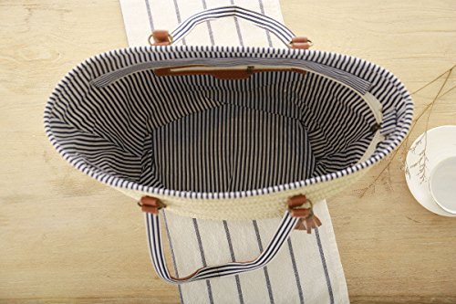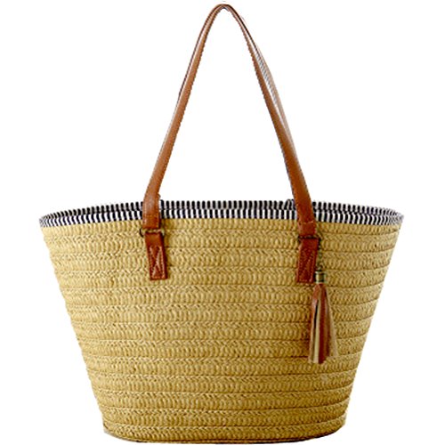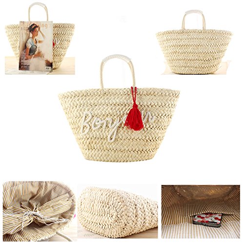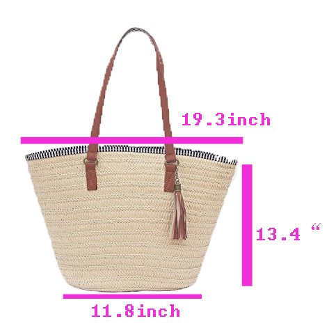 Note For Straw Bag This is Pure Handmade Straw articles, No Place OVERWEIGHT stuff, Appro.less than 1.5 kg this is handmade woven bag,normally,it have thread and rogh handfeeling,N o quality problem the patterns on front and back are different Brand Donalworld Donalworld is the sole supplier of the brand Donalworld Features 1.Main Material: straw 2.Appro. Size: approx.Top width:47cm, Bottom width:26cm, Bottom thickness: 15cm, Height 32cm please kindly allow 1-3cm Size difference and slight color difference. 3.Inner Structure: sythenic Fibre,phone and credit card pouch