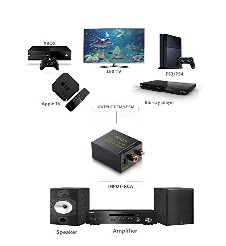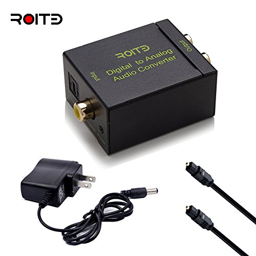 Digital Optical Coax to RCA R/L Analog Audio Converter with Toslink Cable and Power Adapter