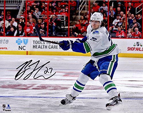 Ben Hutton Vancouver Canucks Autographed 8" x 10" White Jersey Shooting Photograph - Fanatics Authentic Certified