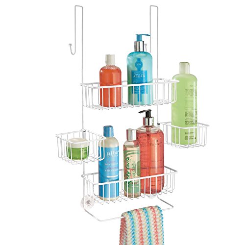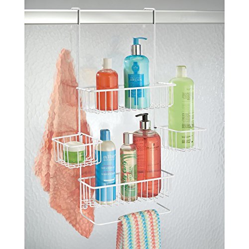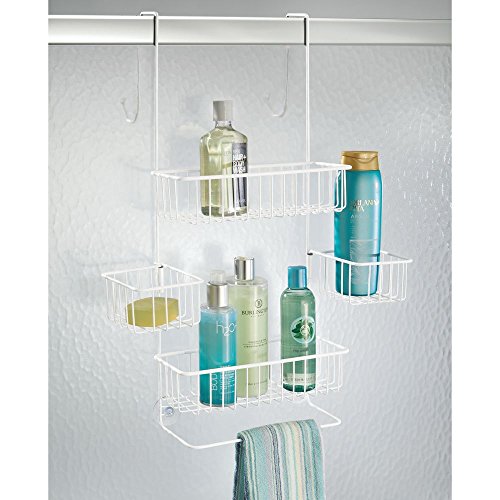 InterDesign Metalo Bathroom Over the Door Shower Caddy with Storage Baskets for Shampoo, Conditioner, Soap – Matte White