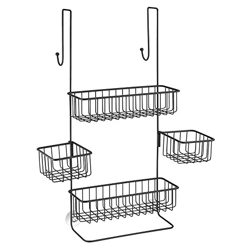 InterDesign Metalo Bathroom Over the Door Shower Caddy with Storage Baskets for Shampoo, Conditioner, Soap – Black Matte