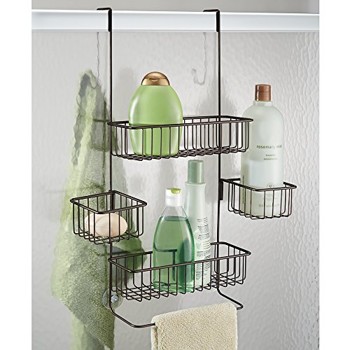 InterDesign Metalo Bathroom Over Door Shower Caddy for Shampoo, Conditioner, Soap - Bronze
