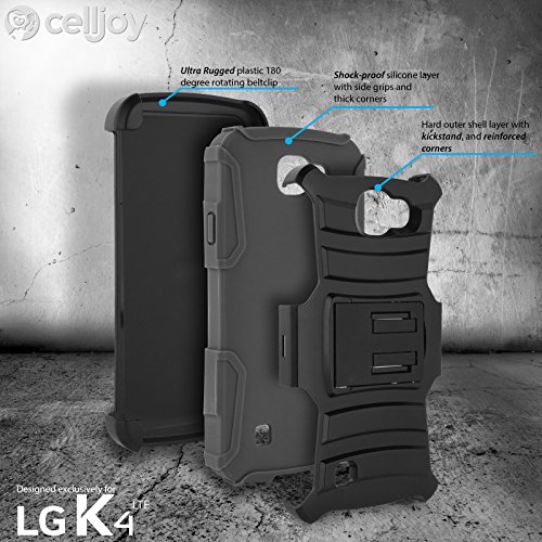 -. Title : LG K4 Case, LG Optimus Zone 3 Case, LG Spree Case, LG Rebel LTE Case, CellJoy [Ultra Red Hybrid] **ShockProof** Bumper Protection Cover **Kickstand** [Locking Swivel Belt Clip Holster Combo]