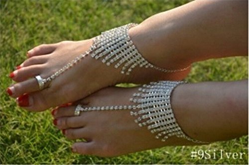 - Feature : Material: Rhinestones / Package includes: 2 pieces of foot chains. / One size fits most. Best gift for your girlfriend, sister. / You can use transparent nail varnish to protect the chain color. / Occasions: On the beach, at home, weddings party, Yoga class, dance class