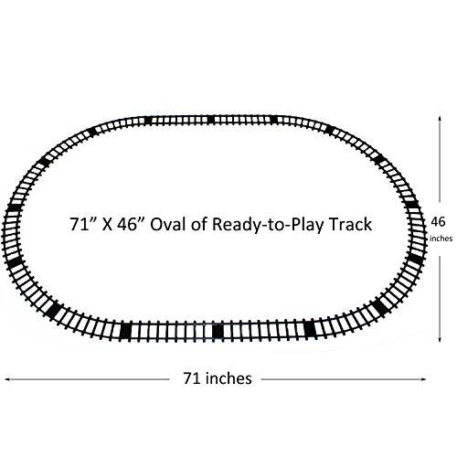 Easy Snap-Together Tracks: 12 Pieces 12 ¾-Inch-Long Curve Tracks and 4 Pieces 14-inch-Long Straight Tracks. 71" X 46" Oval of Ready-to-Play Track.
