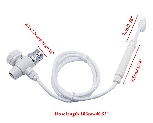 It is quite and comfortable,watertemperature can be directly adjust at the tap. Flush your teeth after meals and beforesleeping,keep health for oral cavity. Easy to install at sinks and in shower. Easy to use -- snap on/off in one second. Easy to carry on travel. Easy to adjust for pressure.