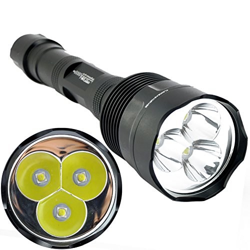 Super Bright 3800 Lumens 3 x CREE XM-L T6 LED Flashlight Torch with Holster, Charger, and 2X 18650 battery (Included)