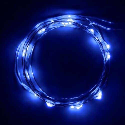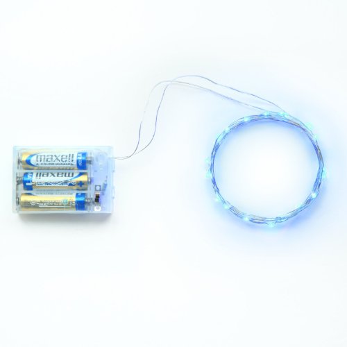 KW-Light Micro LED 20 Blue Color Lights Battery Operated on 7ft Long Silver Color Ultra Thin String Wire