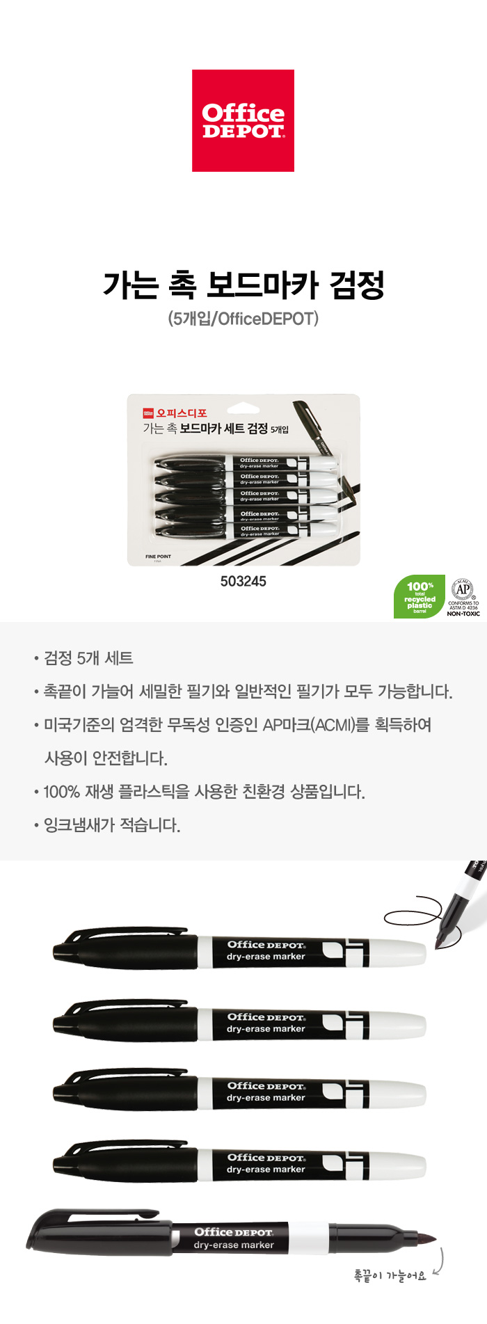 촉끝이 가늘어 세밀한 필기와 일반적인 필기가 모두 가능합니다.
