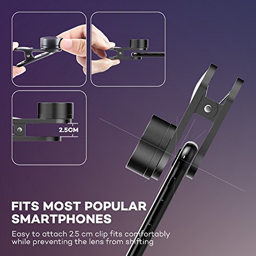 Fits Most Popular Smartphones: Easy to attach 2.5 cm clip fastens comfortably while preventing the lens from shifting