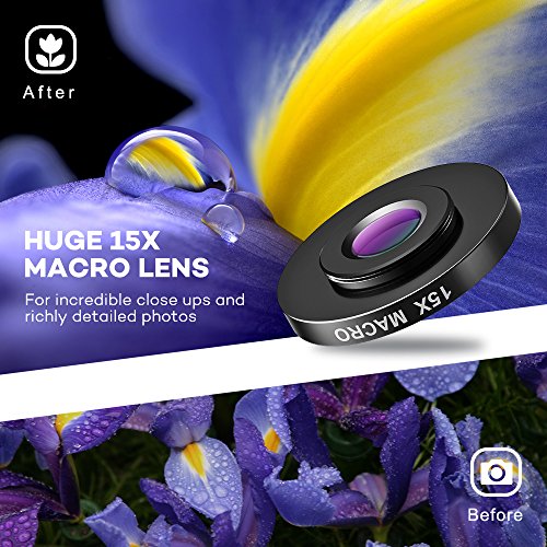 Ultimate Phone Lens Kit: Includes a 15x macro lens, a 0.36x wide-angle lens, and a 180° fish eye lens