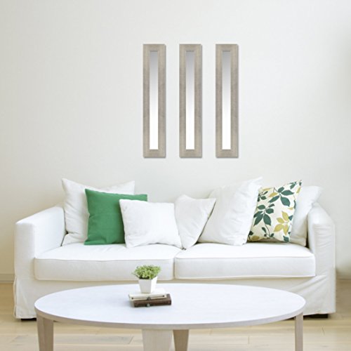 ArtMaison.ca Long Accent Hanging Wall Decorative Mirror with Wide Silver Frame, 10.5-Inch by 54.5-Inch - Set of 3