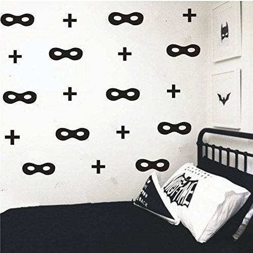 Removable Kids Room Wall Decal Hero Mask with Plus Sign Swiss Decor Sticker Kids Boys Bedroom Vinyl Art Mural Home Interior Stickers YYU-5 (Black)