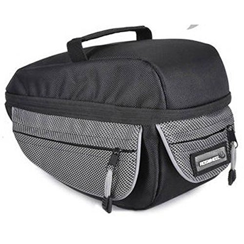 - Feature : ROSWHEEL Quick Release Buckle Bike Shelf Package Bicycle Saddle Bag Specifications: Suitable for circular base tube , is not suitable for oval tube and other shapes tube . Brand: RoswHEEL Material: 1680D polyester Color: Black & Grey Fixed: quick release buckle Net weight: 830 g Size: 28 * 12 * 17 cm Capacity:4.5 L Description: Combined with the length of the shelf for 42 meters Shelf material: aluminum Diameter: 6 mm The main pocket for double zipper. After 2 extremely pocket, 1 pocke / t, argyle Velcro let the shelves and packages can be broken up Cover with our mesh bag inside layer With Velcro isolation layer, can adjust at every position Internal structure: it contains Velcro interlayer, can adjust at will diaphragmatic layer position Piece of unloading for Taiwan's latest design, just turned the handle and can be easily adjusted. Comes with two pairs of film, make the package firmly fixed on the vertical bar. At the bottom of the two elastic, cocker spaniels items such as / air cylinder Package Included: 1 x Bike Shelf Package 1 x Mounting Bracket