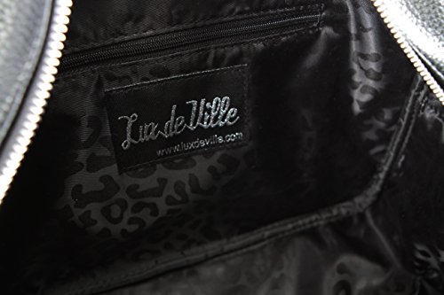 Binding : Apparel Product Description Guess who's back!! One of our all time favorite totes is here for an encore in all new color combos. The Mini Atomic Tote is adorned with our detachable custom dice baubles that can also be used as a keychain. Features our custom Lux de Ville black on black leopard lining with inside pockets, adjustable cross body strap, and matching dust bag. Dimensions: 12" long x 8" high x 6" wide Strap drop: 8" 0