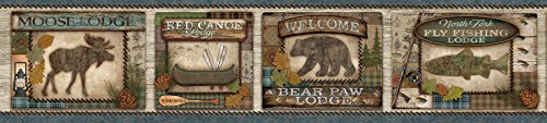 -. Title : Chesapeake TLL01562B Tugaloo Bear Paw Lodge Wallpaper Border, Blue