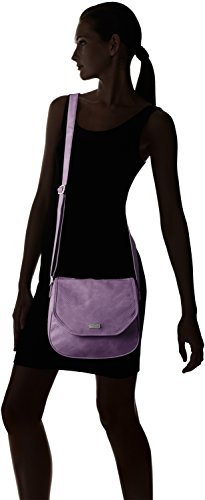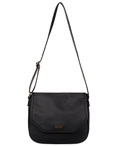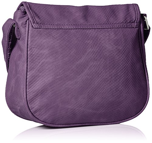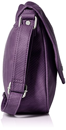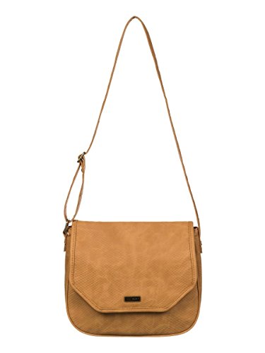 Textured faux-leather cross-body bag featuring large front flap with antiqued logo plaque