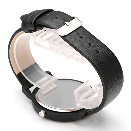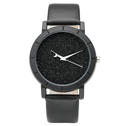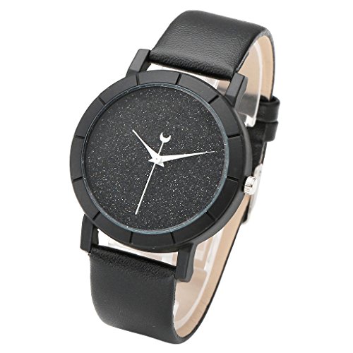 -. Title : Top Plaza Fashion Womens Flash Power Dial Moon Second Hand Non-Scale Black Case Leather Band Analog Quartz Wrist Watch - Black