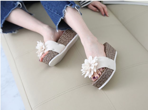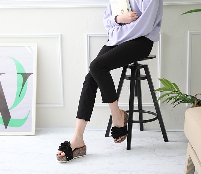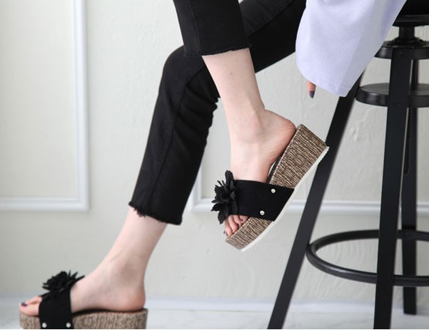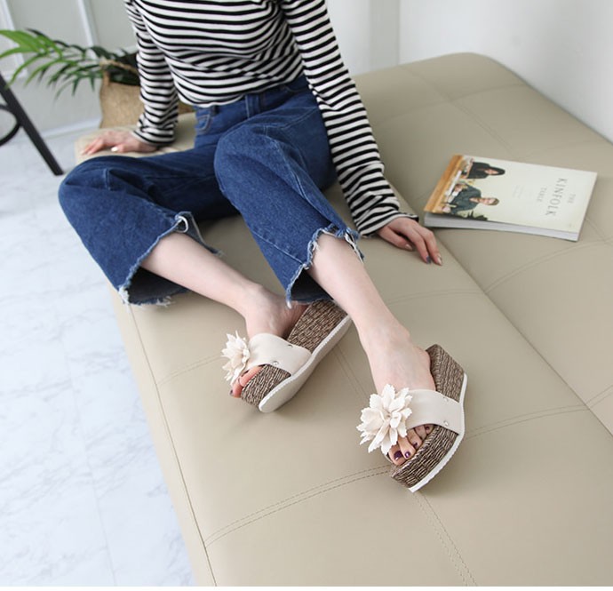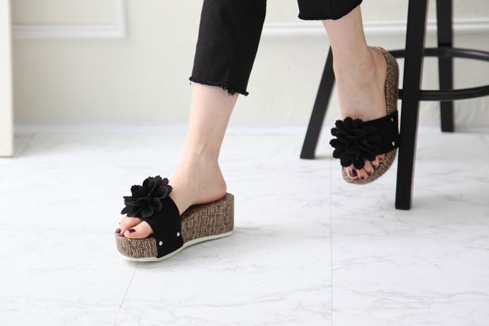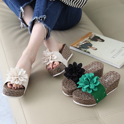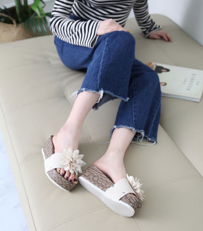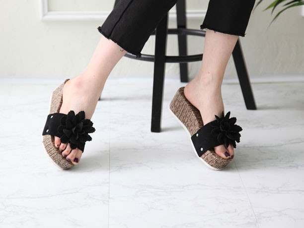 商品名:サンダル レディース 厚底 コサージュ ウェッジヒール 2018 春 ファッション 靴 婦人靴