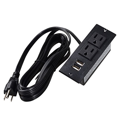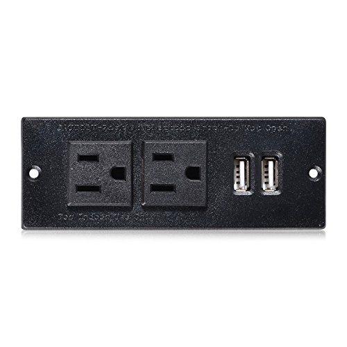 Desktop Power Grommet 2-Socket and 2-USB Convex Surface (Black)