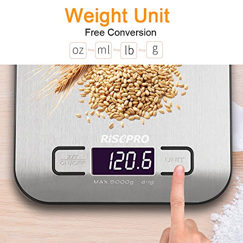 Kitchen Scale, RISEPRO Digital Multifunction Scale 11LB/5KG Slim Design Food Scale Cooking Tea Salt Gram Weight