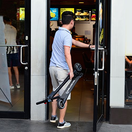 -. Feature : EASY CARRY-This folding electric scooter, only 16.7pounds, is just what you need to zoom around town. Perfect for fun, recreation, or even commuting to school or work. Conveniently 1second folds into tight space to store in trunk, hatchback, or simply carry by hand. / MORE POWER-Enjoybot H3 Electric Scooter has 250W powerful motor with noiseless that help it climb slopes as steep as 20degree and 18miles max. range on a single charge. / SMART DISPLAY-The control panel allow you to check the speed level, battery remaining capacity & running time & current speed. / SAVE ON GAS- Save lots of money and time by taking this scooter along with you on the train, subway, or bus. Now you can step off the bus with this light scooter and quietly zoom to your final destination. / 1Year Limited Warranty covers parts and labor from the manufacturer; Service after sales in CA, United States.